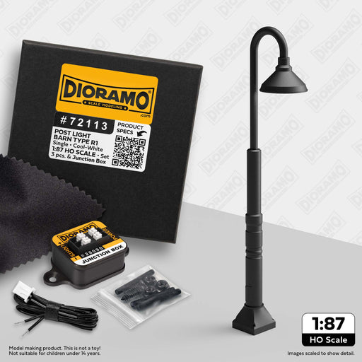 Dioramo #72113Dioramo Scale Modeling #72113 Miniature Post Light Fixture - Barn Type R1 in 1:87 HO Scale. 3pc Set including Mounting Hardware and Easy...