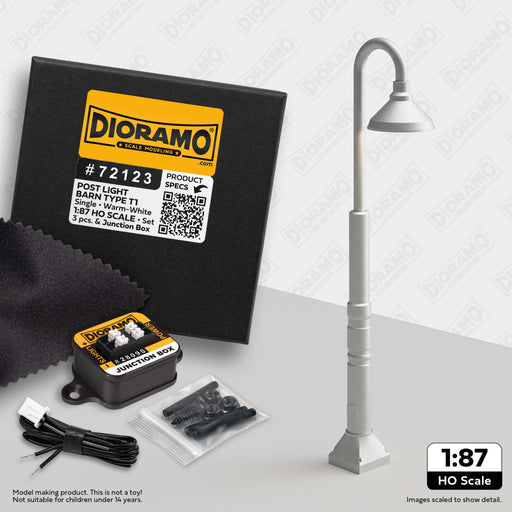 Dioramo #72123Dioramo Scale Modeling #72123 Miniature Post Light Fixture - Barn Type T1 in 1:87 HO Scale. 3pc Set including Mounting Hardware and Easy C...