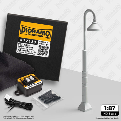 Dioramo #72133Dioramo Scale Modeling #72133 Miniature Post Light Fixture - Barn Type U1 in 1:87 HO Scale. 3pc Set including Mounting Hardware and Easy C...