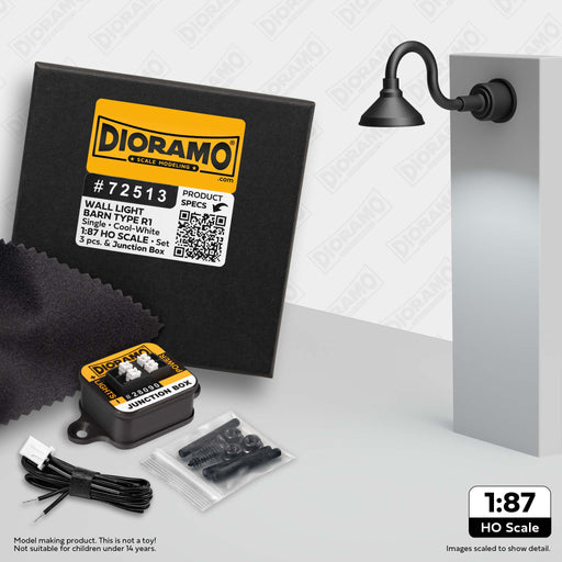 Dioramo #72513Dioramo Scale Modeling #72513 Miniature Wall Light Fixture - Barn Type R1 in 1:87 HO Scale. 3pc Set including Mounting Hardware and Easy...