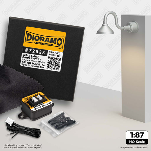 Dioramo #72523Dioramo Scale Modeling #72523 Miniature Wall Light Fixture - Barn Type T1 in 1:87 HO Scale. 3pc Set including Mounting Hardware and Easy C...
