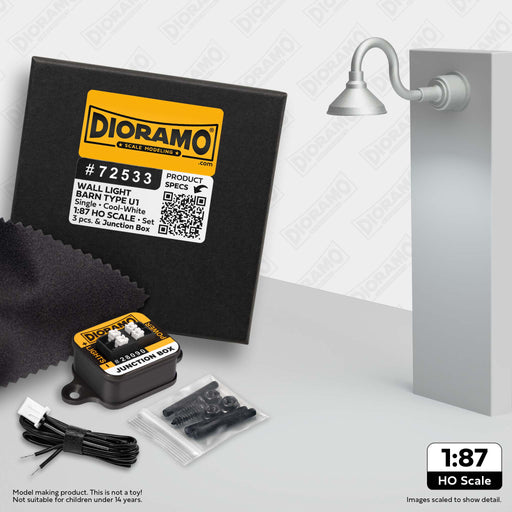 Dioramo #72533Dioramo Scale Modeling #72533 Miniature Wall Light Fixture - Barn Type U1 in 1:87 HO Scale. 3pc Set including Mounting Hardware and Easy...
