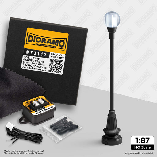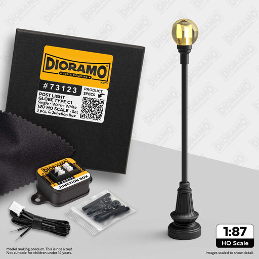 Dioramo #73143Dioramo Scale Modeling #73143 Miniature Post Light Fixture - Globe Type E1 in 1:87 HO Scale. 3pc Set including Mounting Hardware and Easy ...