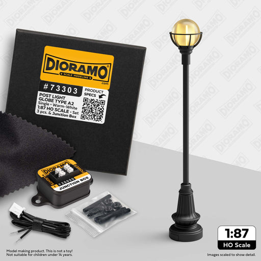 Dioramo #73303Dioramo Scale Modeling #73303 Miniature Post Light Fixture - Globe Type A2 in 1:87 HO Scale. 3pc Set including Mounting Hardware and Eas...