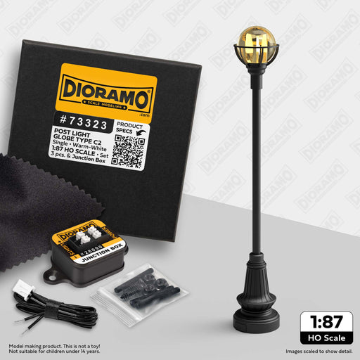 Dioramo #73323Dioramo Scale Modeling #73323 Miniature Post Light Fixture - Globe Type C2 in 1:87 HO Scale. 3pc Set including Mounting Hardware and Easy ...