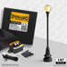 Miniature Post Light Fixture - Globe Type A1 in 1:87 HO Scale. 3pc Set including Mounting Hardware and Easy Connect Junction Box compatible with the Dioramo Lighting System, or 9-17V AC, DC, or DCC Power.