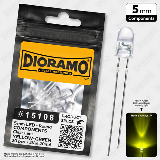 Dioramo #15108Dioramo Scale Modeling #15108 20 Pieces of Yellow-Green 5mm DIP LED Light Components. The Venerable DIP LED Light has been the cornersto...