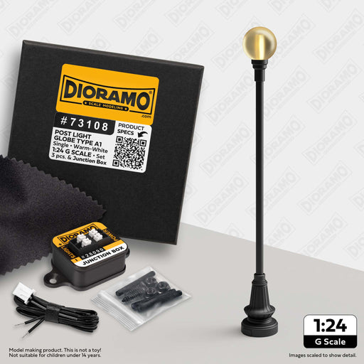 Dioramo #73108Dioramo Scale Modeling #73108 Miniature Post Light Fixture - Globe Type A1 in 1:24 G Scale. 3pc Set including Mounting Hardware and Easy C...