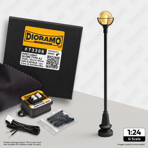 Dioramo #73308Dioramo Scale Modeling #73308 Miniature Post Light Fixture - Globe Type A2 in 1:24 G Scale. 3pc Set including Mounting Hardware and Easy C...