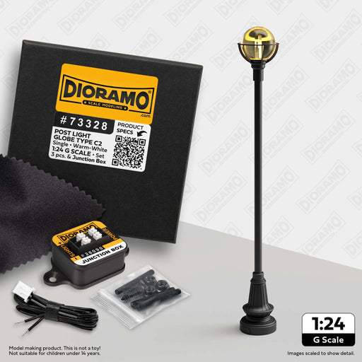 Dioramo #73128Dioramo Scale Modeling #73128 Miniature Post Light Fixture - Globe Type C1 in 1:24 G Scale. 3pc Set including Mounting Hardware and Easy C...