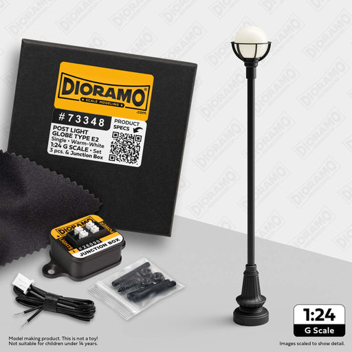 Dioramo #73348Dioramo Scale Modeling #73348 Miniature Post Light Fixture - Globe Type E2 in 1:24 G Scale. 3pc Set including Mounting Hardware and Easy C...