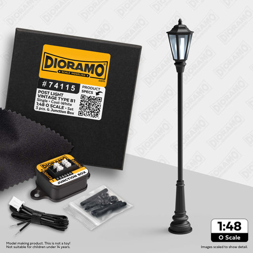 Dioramo #74115Dioramo Scale Modeling #74115 Miniature Post Light Fixture - Vintage Type B1 in 1:48 O Scale. 3pc Set including Mounting Hardware and Easy...