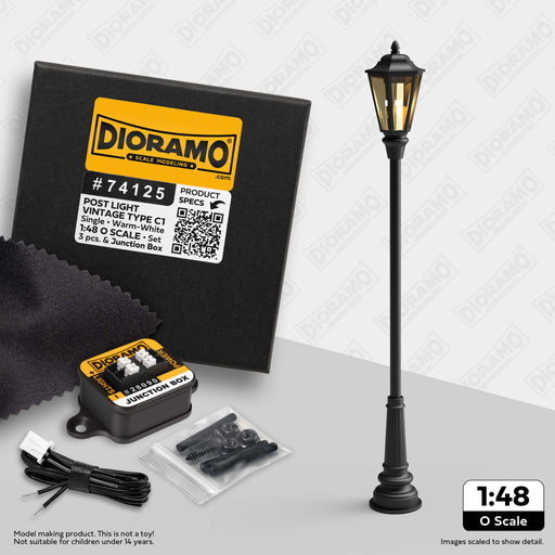 Dioramo #74125Dioramo Scale Modeling #74125 Miniature Post Light Fixture - Vintage Type C1 in 1:48 O Scale. 3pc Set including Mounting Hardware and Easy...