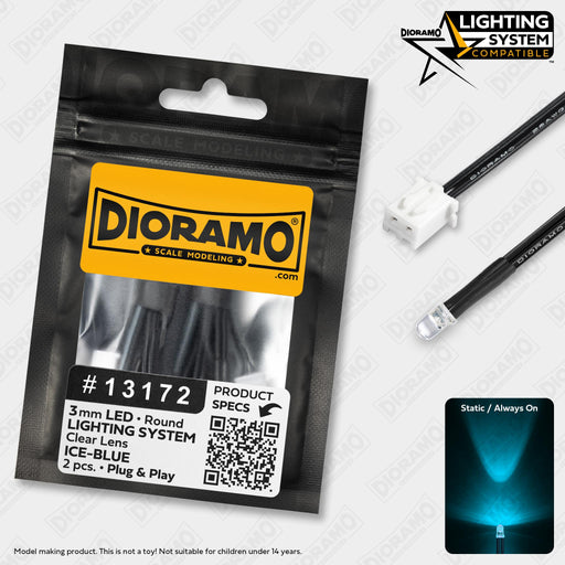 Dioramo #13172Dioramo Scale Modeling #13172 2 Pieces of Ice-Blue 3mm DIP LED Lights, Prewired and Compatible with the Dioramo Lighting System. The Ven...