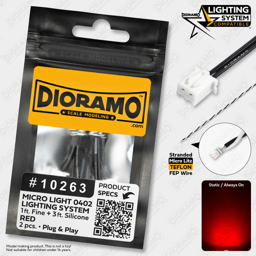 Dioramo #10263Dioramo Scale Modeling #10263 2 Pieces of Red 0402 Micro Lights, Prewired and Compatible with the Dioramo Lighting System. The Smalles...