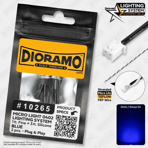 Dioramo #10265Dioramo Scale Modeling #10265 2 Pieces of Blue 0402 Micro Lights, Prewired and Compatible with the Dioramo Lighting System. The Smalle...