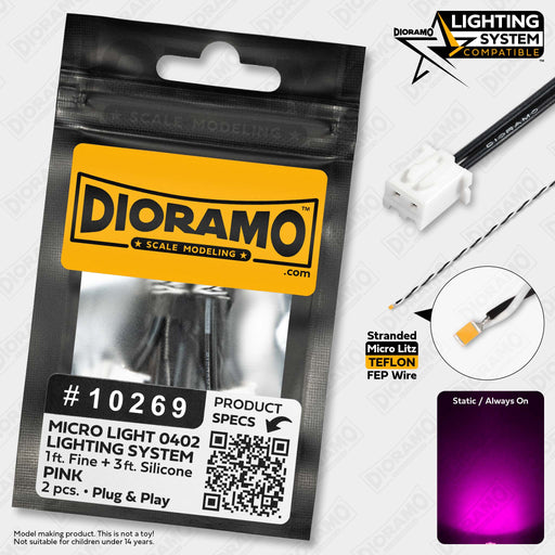 Dioramo #10269Dioramo Scale Modeling #10269 2 Pieces of Pink 0402 Micro Lights, Prewired and Compatible with the Dioramo Lighting System. The Smalle...