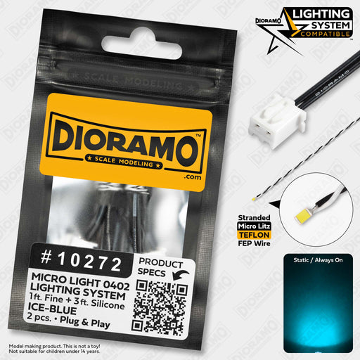 Dioramo #10272Dioramo Scale Modeling #10272 2 Pieces of Ice-Blue 0402 Micro Lights, Prewired and Compatible with the Dioramo Lighting System. The Sm...