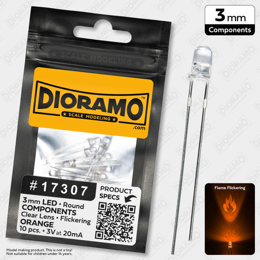 Dioramo #17307Dioramo Scale Modeling #17307 10 Pieces of Orange 3mm DIP LED Light Components with a built-in Flame Flickering Effect. A Random Flicker...