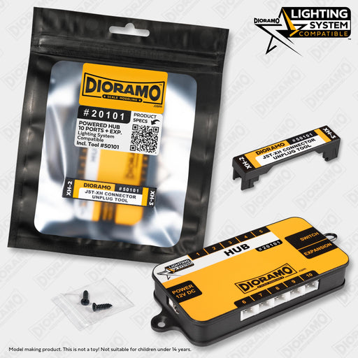 Dioramo #20101Dioramo Scale Modeling #20101 Hub for the Dioramo Lighting System 10-Port Powered Light Hub with Expansion and Switch Ports, Compatib...